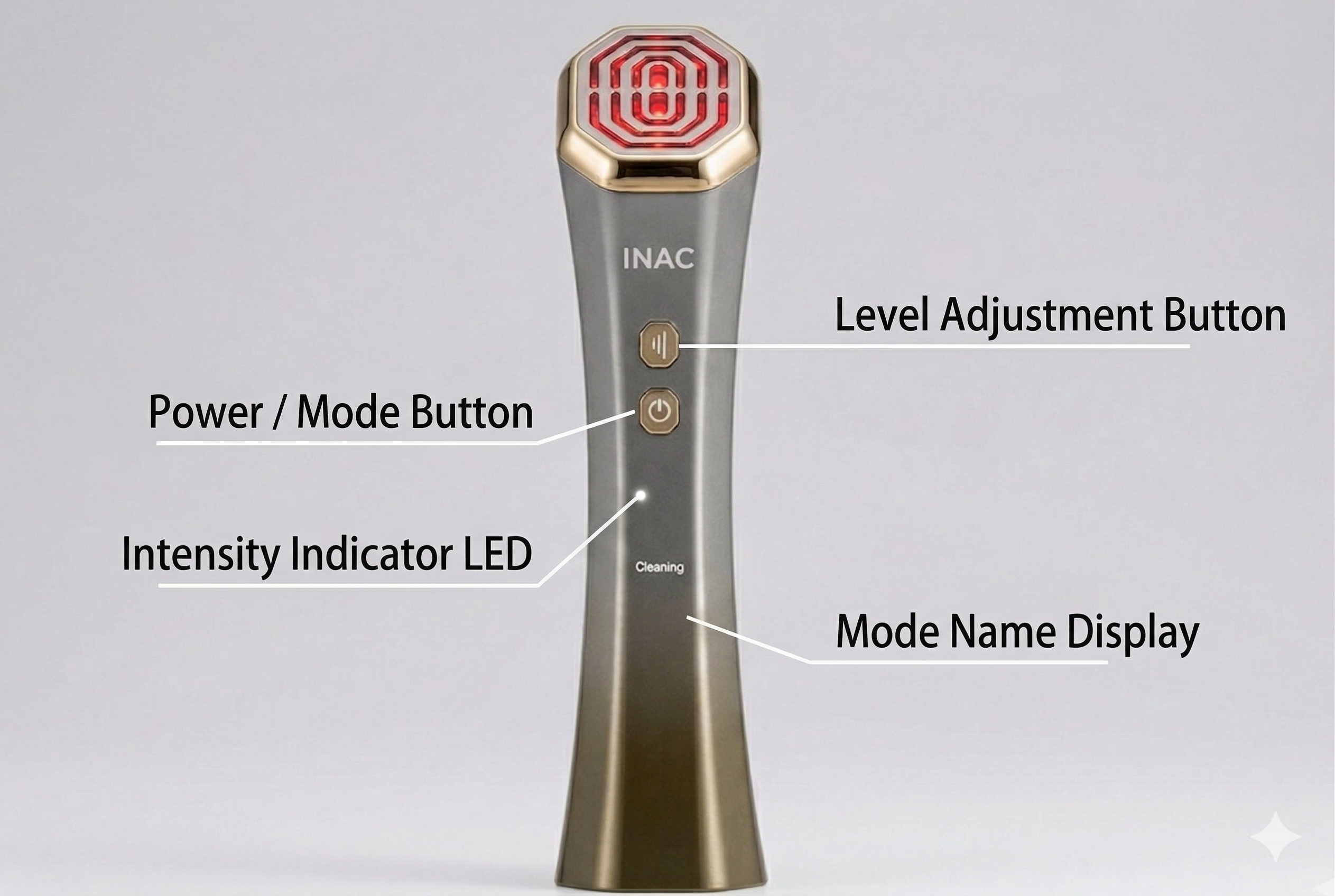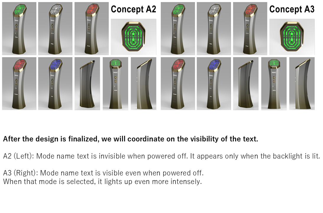 Equipped with functional LEDs and buttons to toggle modes and intensity levels, our prototypes deliver a user experience identical to the final product. Precision screen printing on icons (such as power symbols) ensures a finish indistinguishable from mass-produced units.